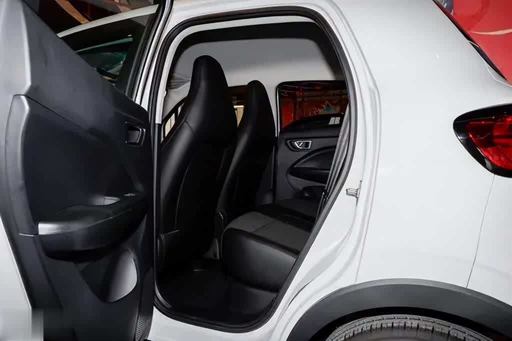 空间方面,整车尺寸为3620x1652x16050(1592)mm,轴距为2400mm,在A00级小车中属于较大水平。我身高165厘米,坐在前排后头部仍有一拳半空间。父亲身高178厘米,坐后排时膝部仍有一拳余量,腿部姿势自然不局促。由于地台几乎全平,后排中间乘客的脚部也能舒适放置,不像一些小型车那样有明显凸起。座椅方面,T03采用织物材质,填充柔软,包裹性好。夏季乘坐透气,冬季不冰冷。
